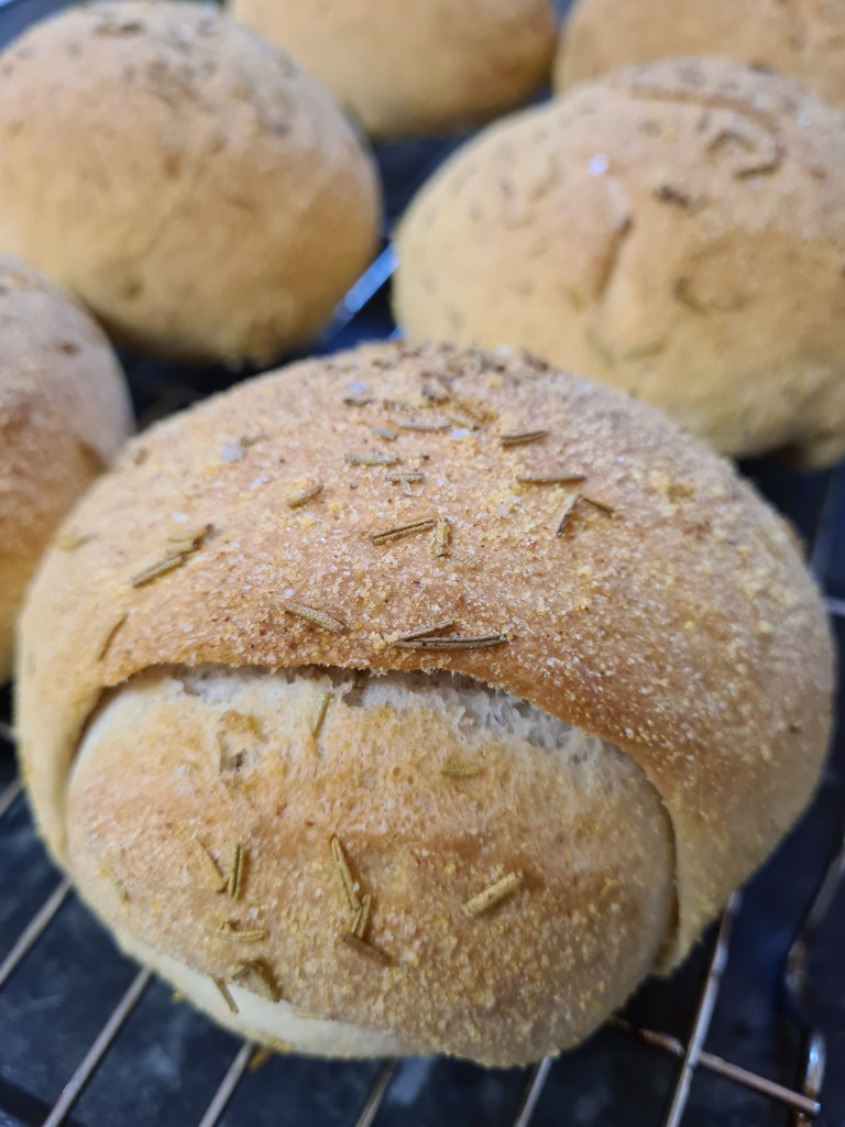 I need to give some credit to my husband as this is his recipe and it’s really good. He loves to make bread, pizza, and cakes. He likes to try out new recipes and each time he nails it. Here, he added rosemary to the rolls, seeds to the loaves, and a mix of herbs and seeds to the Italian-style baguettes; three of my favourites!