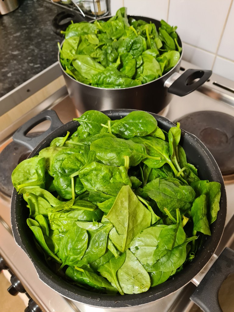 Bring to boil a large pot of water and put in the spinach.