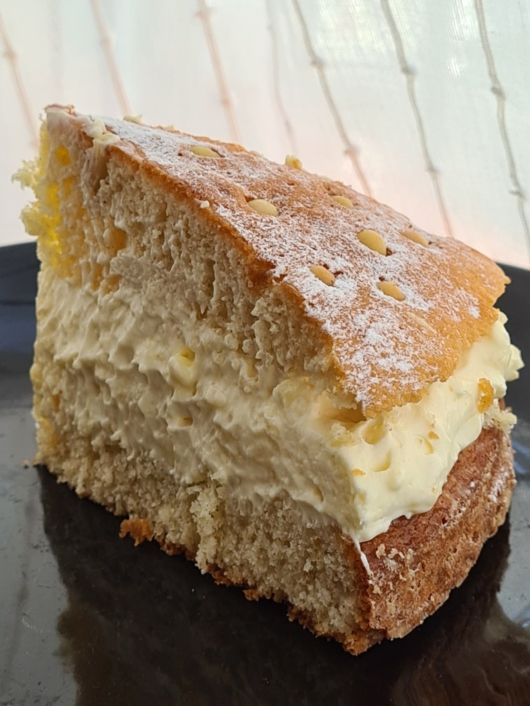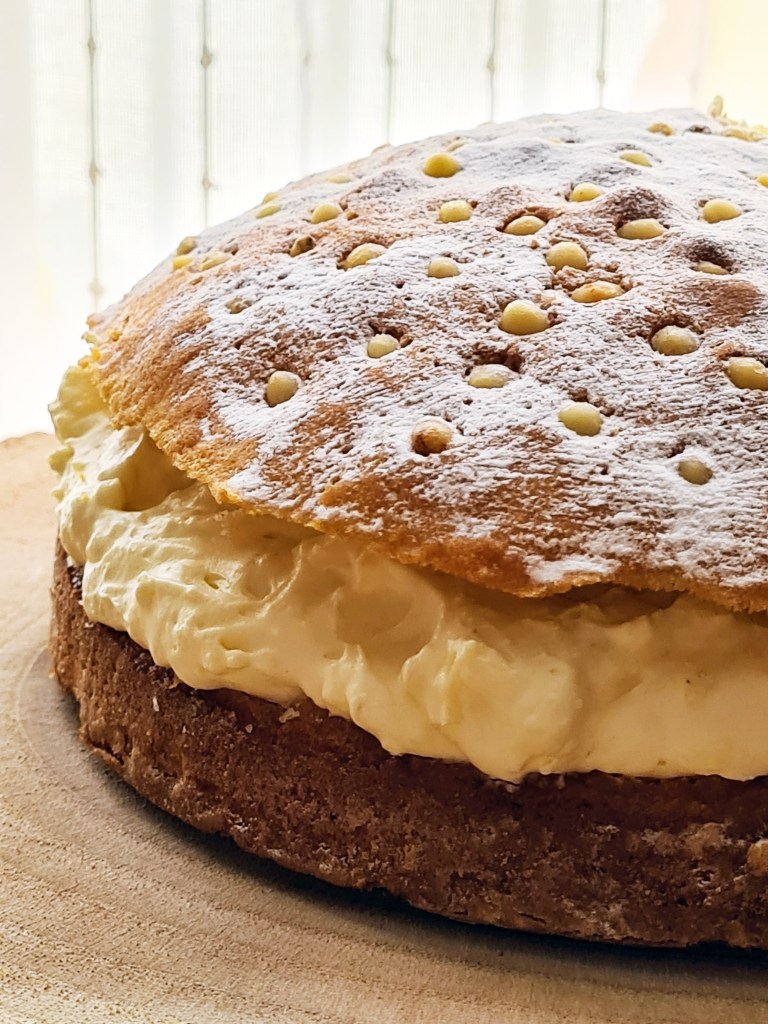 A perfect accompaniment to Nuvy’s Berry Balance tea infusion (visit our online tea shop at nuvys.com). This luscious and creamy cake is your guilty pleasure! If you prefer, instead of pine nuts, you can use almond flakes or crushed pistachio kernels. Yummy!!