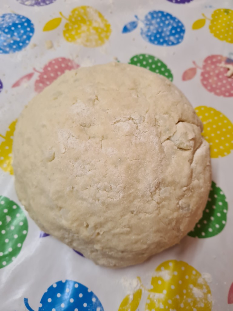 Add the flour, the egg and salt, and with your hands, blend the ingredients for a couple of minutes (the dough should be soft and should hold together well).