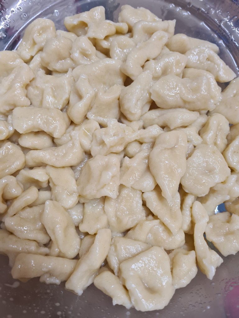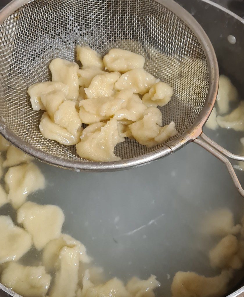 As you cook them (remember, it takes only few seconds to float to the top), place them in a bowl adding a little olive oil to prevent from sticking together.