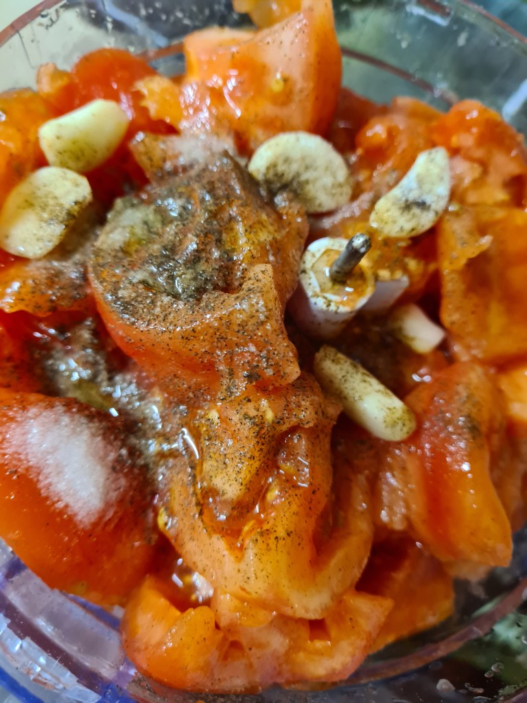 Finally, in a food processor, put in the tomatoes with the rest of the ingredients and blend well.