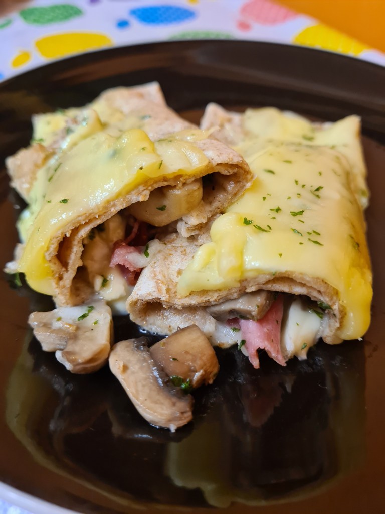 I came up with this dish as I had these ingredients in the fridge and at first, I was not sure what to do with them. I wanted to bake savoury crepes but then I thought that chapattis could be a great substitute. Needless to say, they came up delicious. I have a newly found love with German salami and baked with your favourite cheese it’s super tasty.