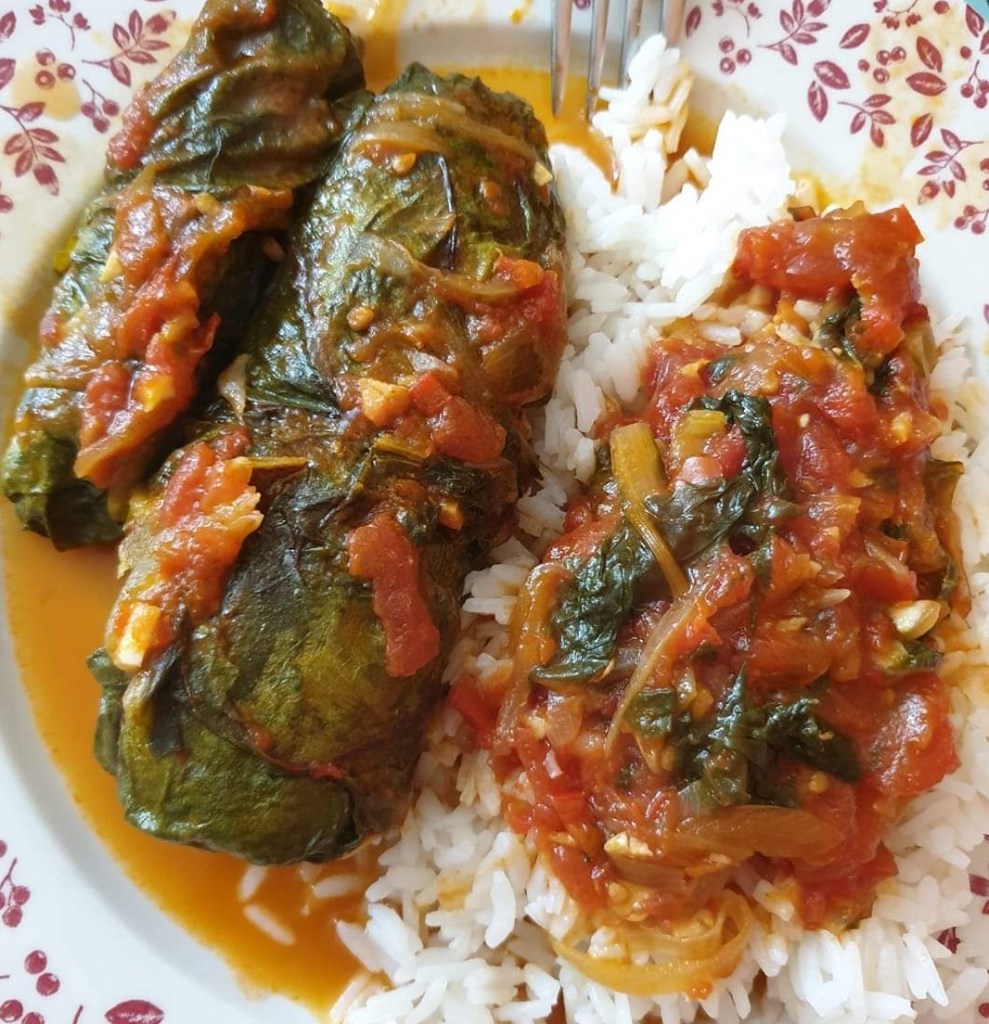 With this recipe you can make about 15 rolls or less (if the chard is too small or it breaks, you will need to use a couple of leaves or more for each roll).