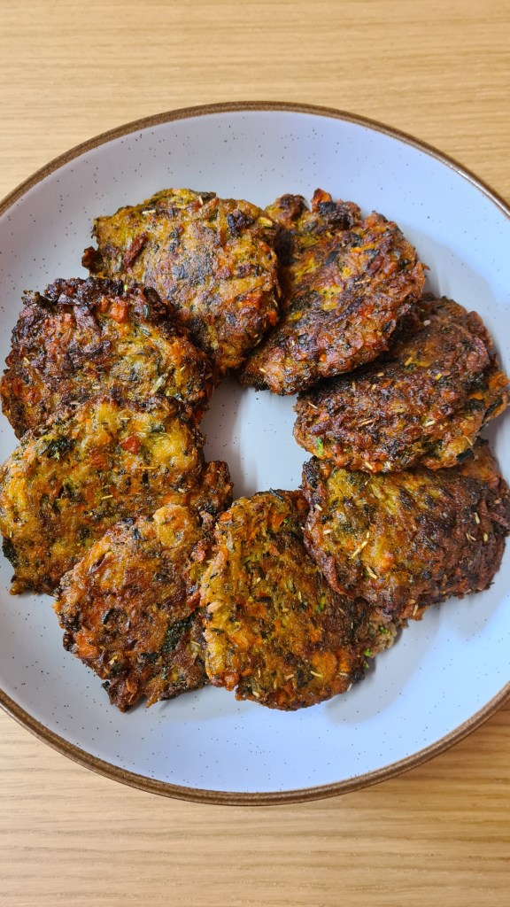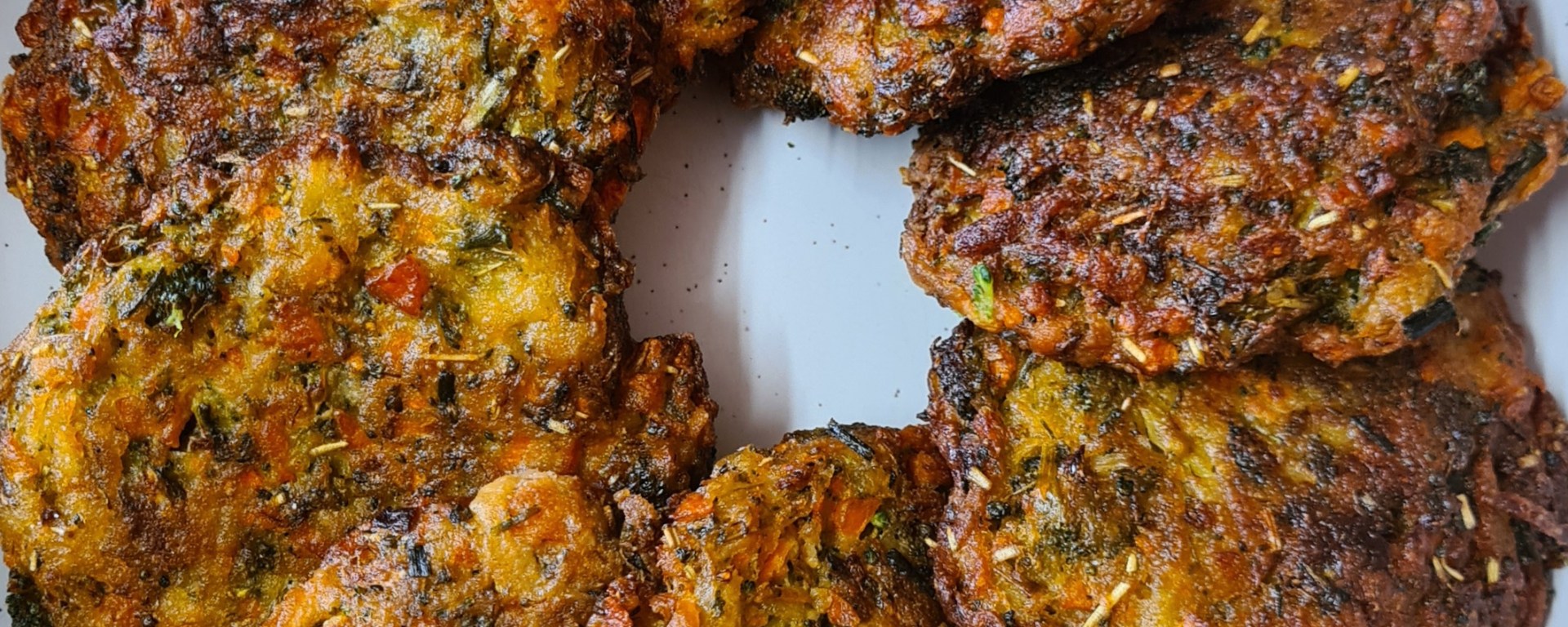 I love veggie fritters! They are so versatile. You can serve them for lunch, dinner, or as a snack. They are a great alternative to meat burgers and you can serve them to your kids with their favourite sauce. When cold they tend to become softer so to bring back the crunchy taste, just warm them up in the oven for a few minutes and enjoy.