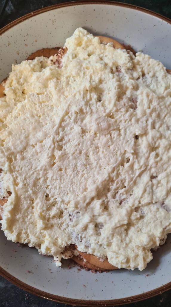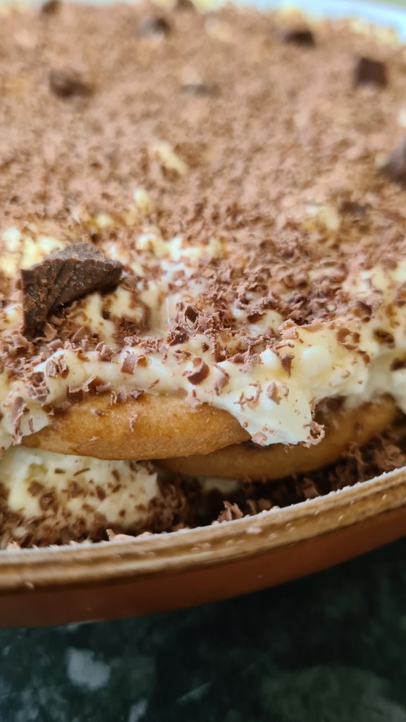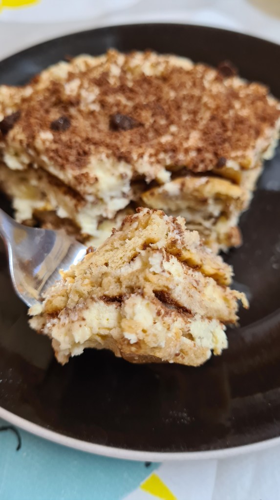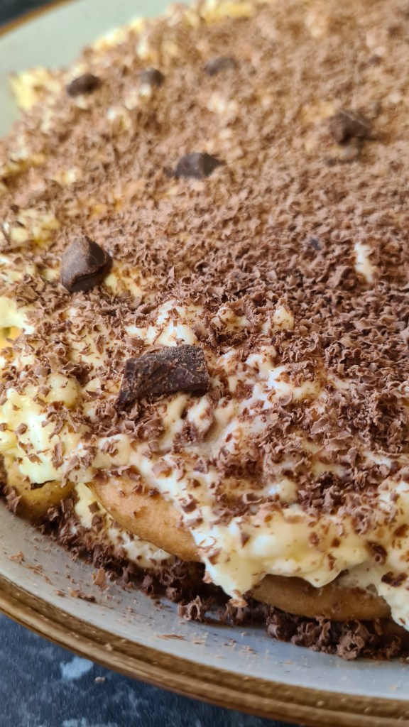 My husband came up with this dessert while trying to recreate something he used to eat as a child in his hometown Venezuela. He thought of using yoghurt instead of the usual rich type of cream used for cakes as he wanted something light, but we had not tried yet this version with diplomat cream so here is a rich, creamy dessert with coffee and grated semi-dark chocolate. You must try it. It’s super scrumptious! A must-try! 😇