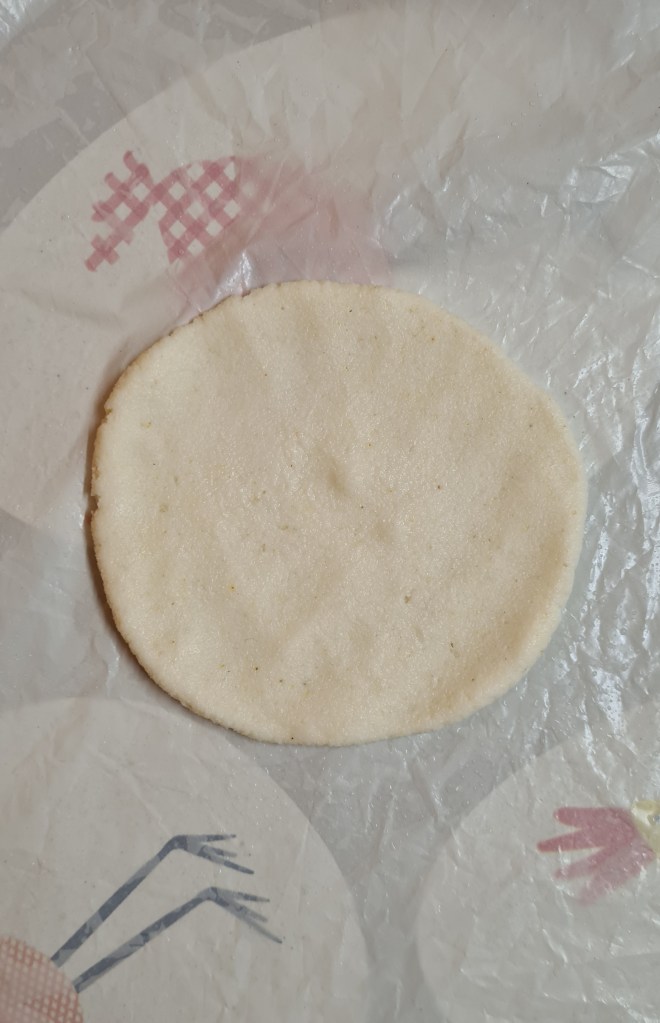 Grab a ball of dough, place it on the film, and flatten it into a disk about 4-5mm tall.