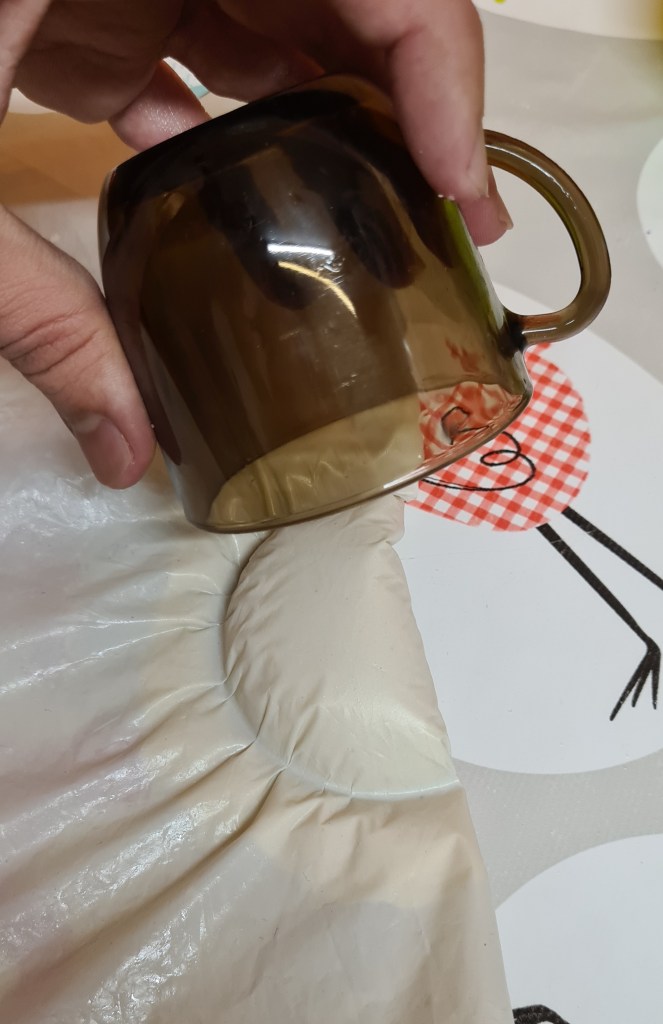 Press the film with your finger and slide it over the edge of the empanada. Alternatively, you can use a pastry cutter or a saucer to assist you.