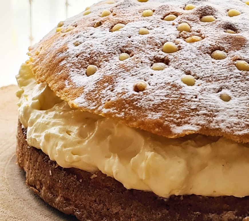 A perfect accompaniment to Nuvy’s Berry Balance tea infusion (visit our online tea shop at nuvys.com). This luscious and creamy cake is your guilty pleasure! If you prefer, instead of pine nuts, you can use almond flakes or crushed pistachio kernels. Yummy!! Serves 6/8 people Ingredients: For the soft cake 2 eggs 120g sugar 40g room temperature unsalted butter 40g whole milk 140g plain flour … Continue reading Diplomat Pine Nut Cake